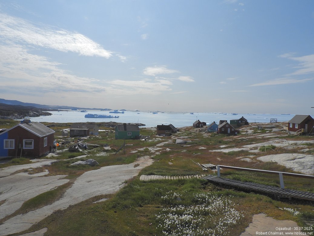Vue vers la mer et les icebergs